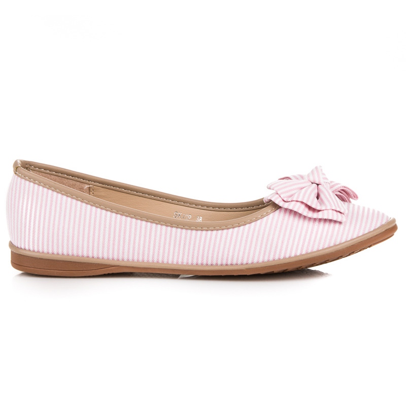 Information: Seastar Ribbstickade ballerinor med rosett rosa