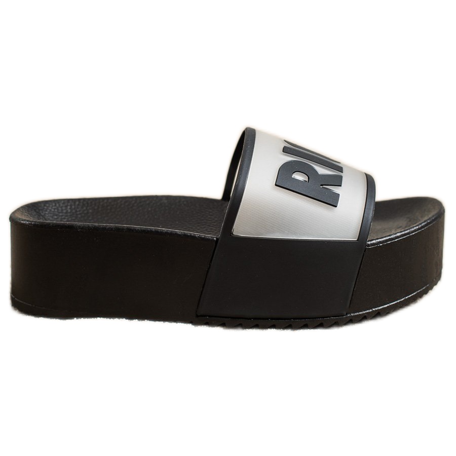 Dessa slip-on flikar är gjorda av 100% gummi, vilket gör dem lätta, flexibla och lätta att rengöra. Den öppna hälen och ingen tå gör dem mycket bekväma och perfekta för varmare dagar på våren och sommaren. Tack vare den 5 cm höga plattformen tillför de lämplig subtilitet utan att belasta fötterna.