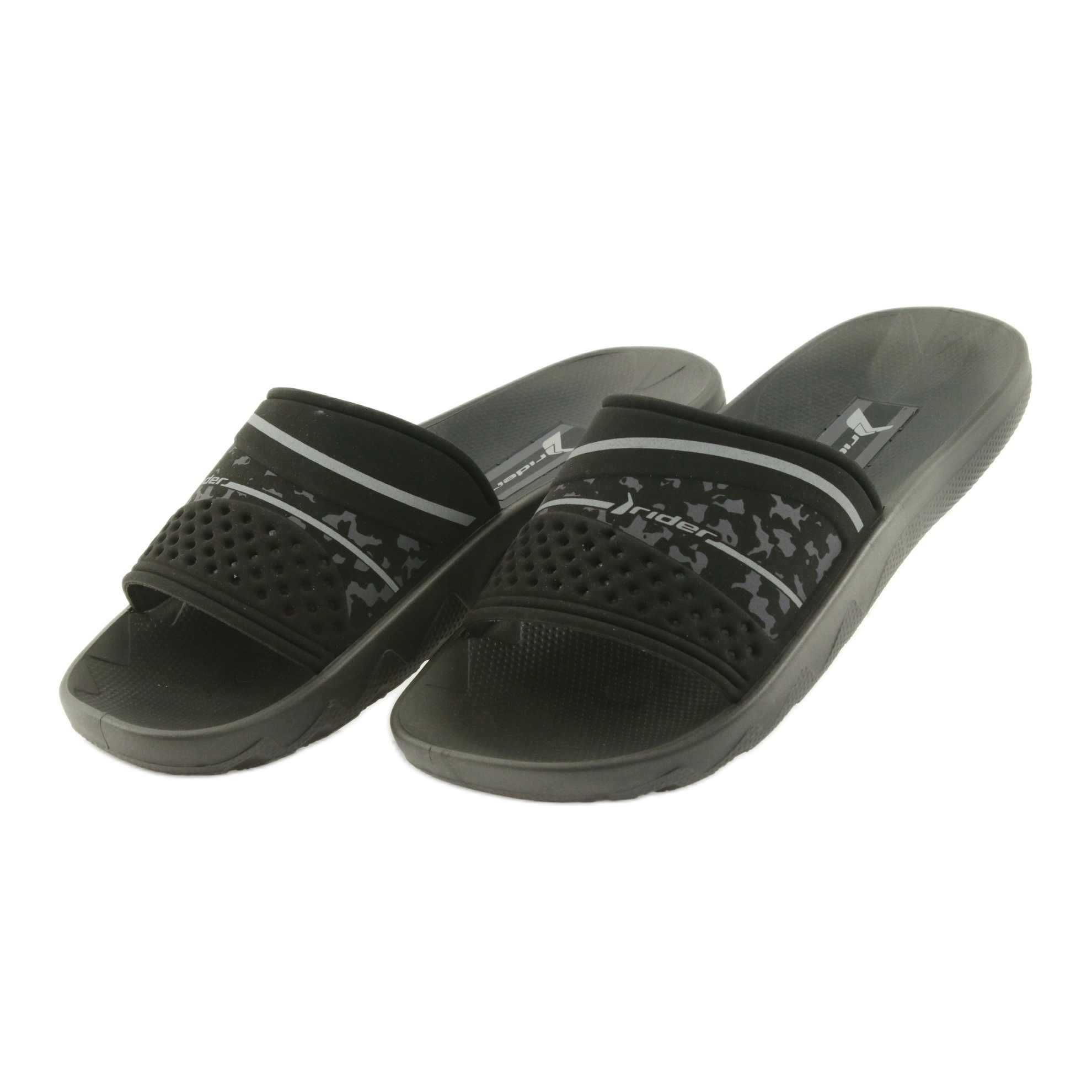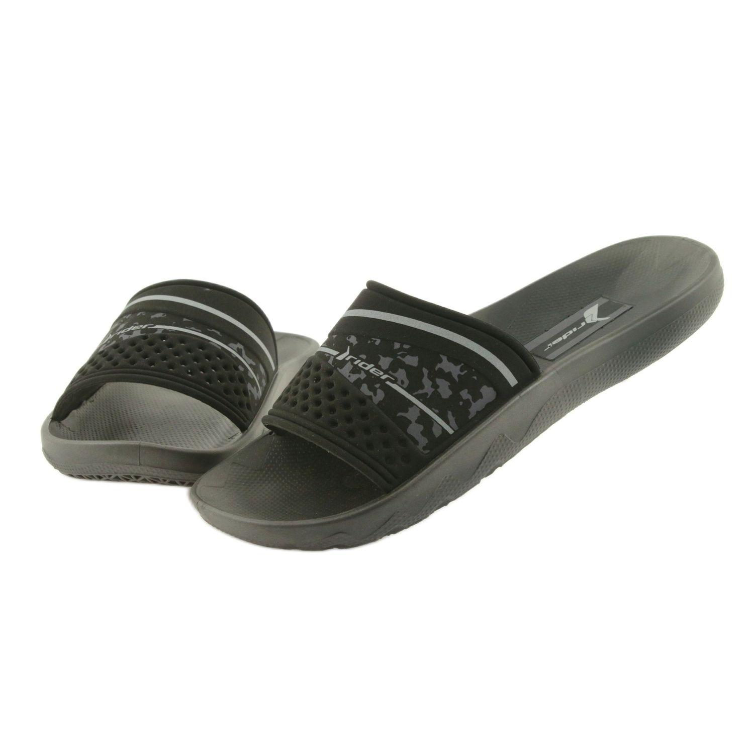 Fritidsflipflops för män Rider 82499 svart är det perfekta valet för alla som letar efter bekväma och snygga skor för vardagsbruk och sommarresor. Dessa flip-flops är gjorda av flexibelt gummimaterial och kännetecknas av en anatomisk form, vilket möjliggör en perfekt passform till foten. Tack vare detta kan användaren njuta av komfort även när den bärs i många timmar.