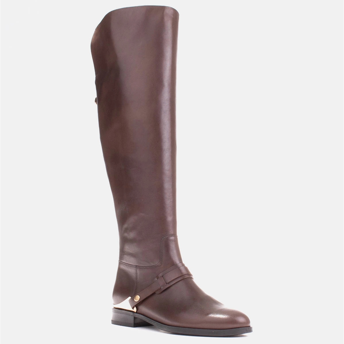 Information: Marco Shoes Ridstövlar i läder med guldplåt brun