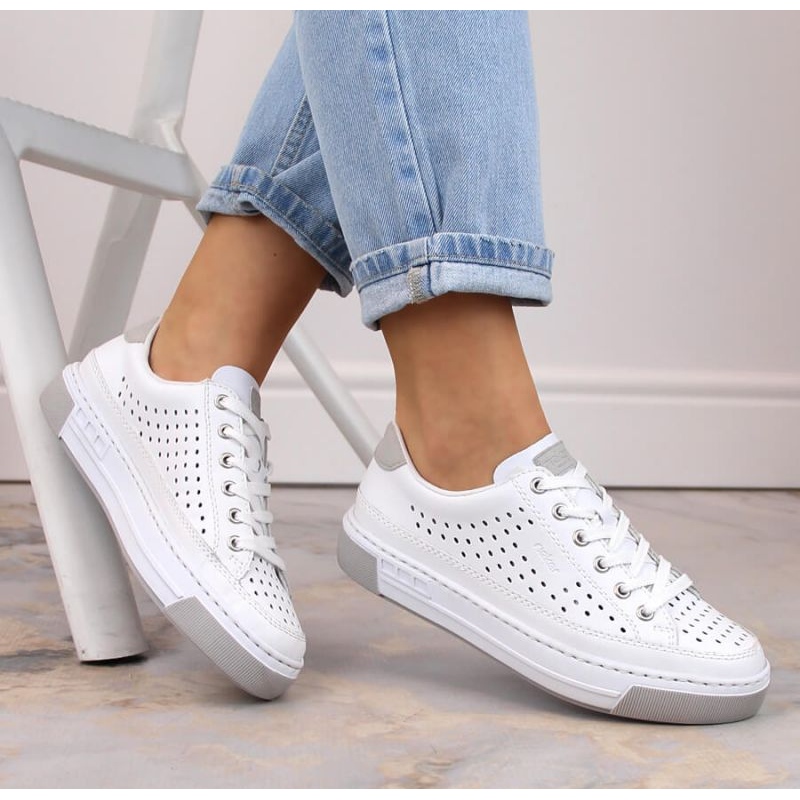 Detaljer: Rieker W RKR642 vita genombrutna läderskor