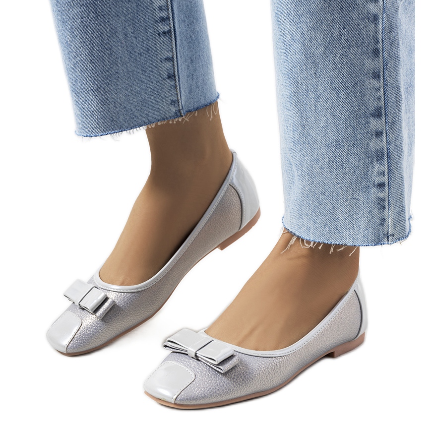 Upptäck unik stil och komfort med glänsande grå Rikke-balettlägenheter. Dessa fashionabla damskor i grått/silver väcker uppmärksamhet med sin ursprungliga design och eleganta finish, vilket gör dem till det perfekta valet för alla tillfällen. Ovandeln av ekologiskt läder av hög kvalitet säkerställer inte bara hållbarhet utan också komfort under användning.