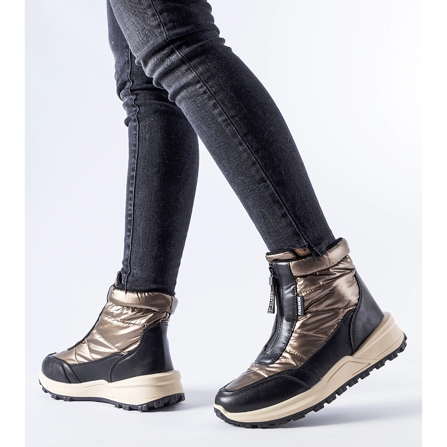 Snygga och varma snöstövlar för en modern kvinna som kombinerar en fashionabla look med praktiska lösningar för vintern. Den höga övre räckvidden upp till vristen skyddar effektivt mot kyla och snö, och blixtlåset på sidan gör det mycket lättare att ta på sig och ta bort.