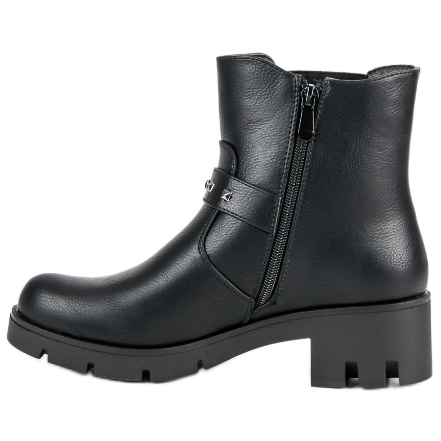 Den starka fördelen med dessa stövlar är de dekorativa elementen - ett spänne och strass, som ger skorna en rockkaraktär, vilket gör dem till ett perfekt komplement till både vardagsstyling och kvällsutflykter. De matchar perfekt med jeans, kjolar eller klänningar, vilket ger uttrycksfullhet till varje styling.