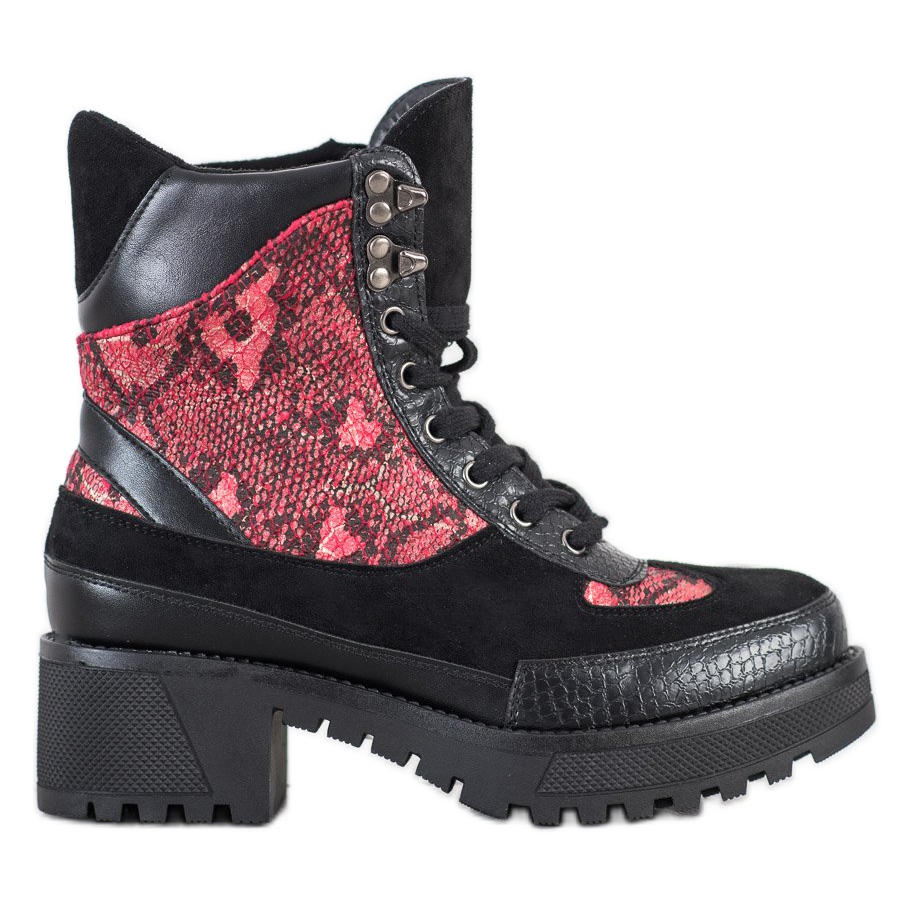 Lär känna de fashionabla Groto Gogo Rockowe Workery ankelboots i en unik svart och röd färgskala. Dessa snygga skor är en perfekt kombination av elegans och komfort, perfekta för vardagsstyling såväl som rocklooks.