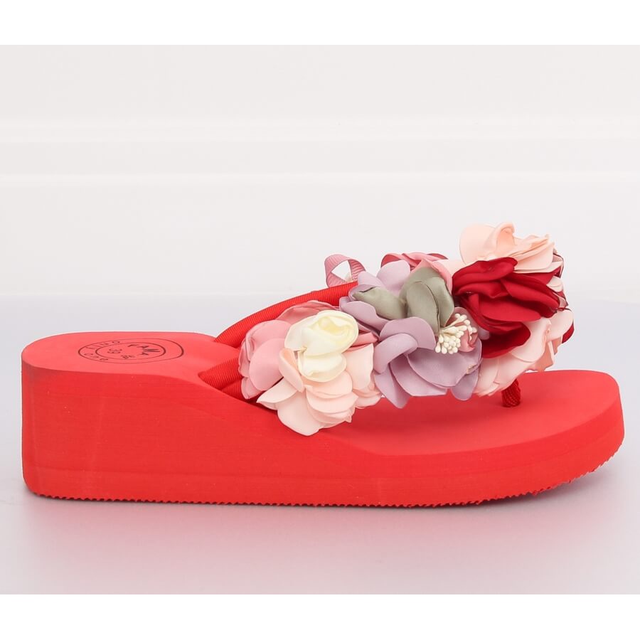 Upptäck unika röda FM5050 Röda flipflops med skumsula, som perfekt kombinerar komfort och mode! Dessa flip-flops för kvinnor, satta på en lätt 5 cm hög kil, är ett perfekt val för sommardagar. De kännetecknas inte bara av sin komfort, utan också av förtjusande, flerfärgade detaljer och charmiga blomdekorationer som väcker uppmärksamhet tack vare imponerande pärlor och zirkoner.