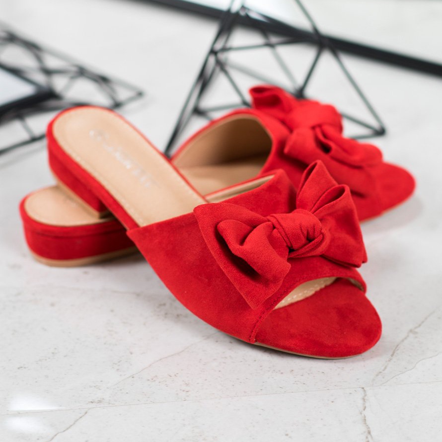 Här är det perfekta komplementet till sommarens styling - röda platta sandaler från märket SHELOVET! Dessa imponerande skor med en charmig rosett kommer att bli ett favoritelement i din garderob, speciellt om du är en modig och moderiktig designad kvinna.