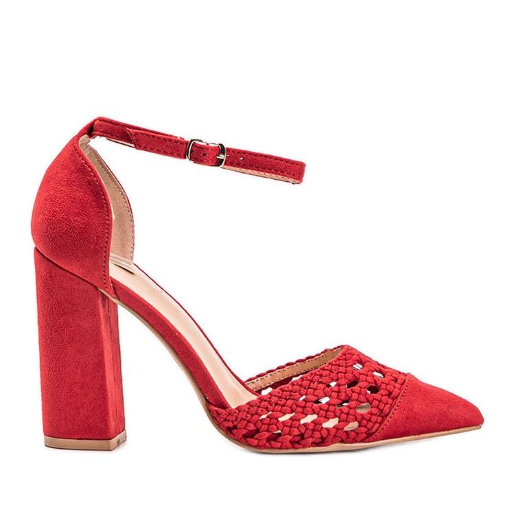Vi presenterar Red openwork pumps med hög klack Hana - en elegant modell som passar perfekt in i sommarens trender! Dessa pumps är gjorda av högkvalitativ eko-mocka och kännetecknas av en vacker röd nyans och en genombruten detalj precis bakom tån, vilket ger lätthet och sofistikering.
