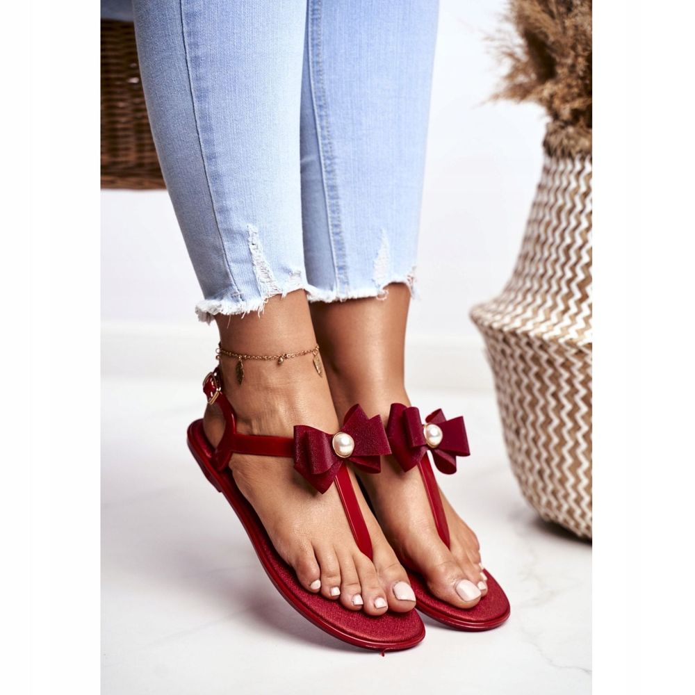 Information: LU BOO Röda gummisandaler för kvinnor flip-flops Etta Bow