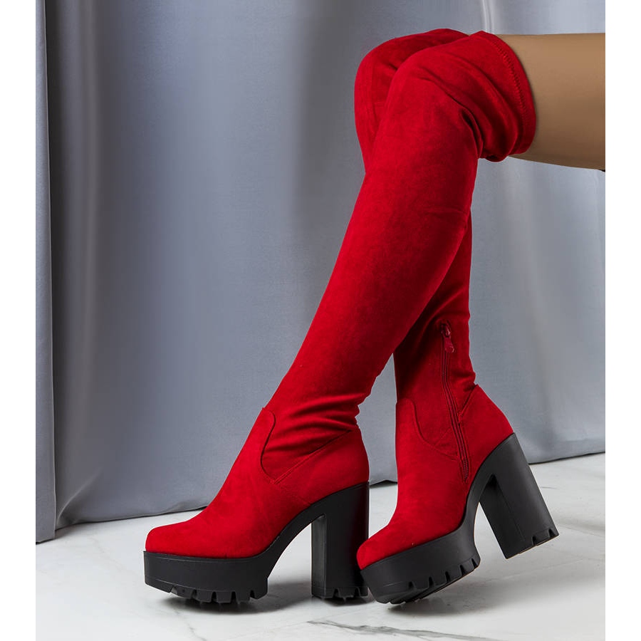 Information: Röda höga stövlar i mocka från Byron