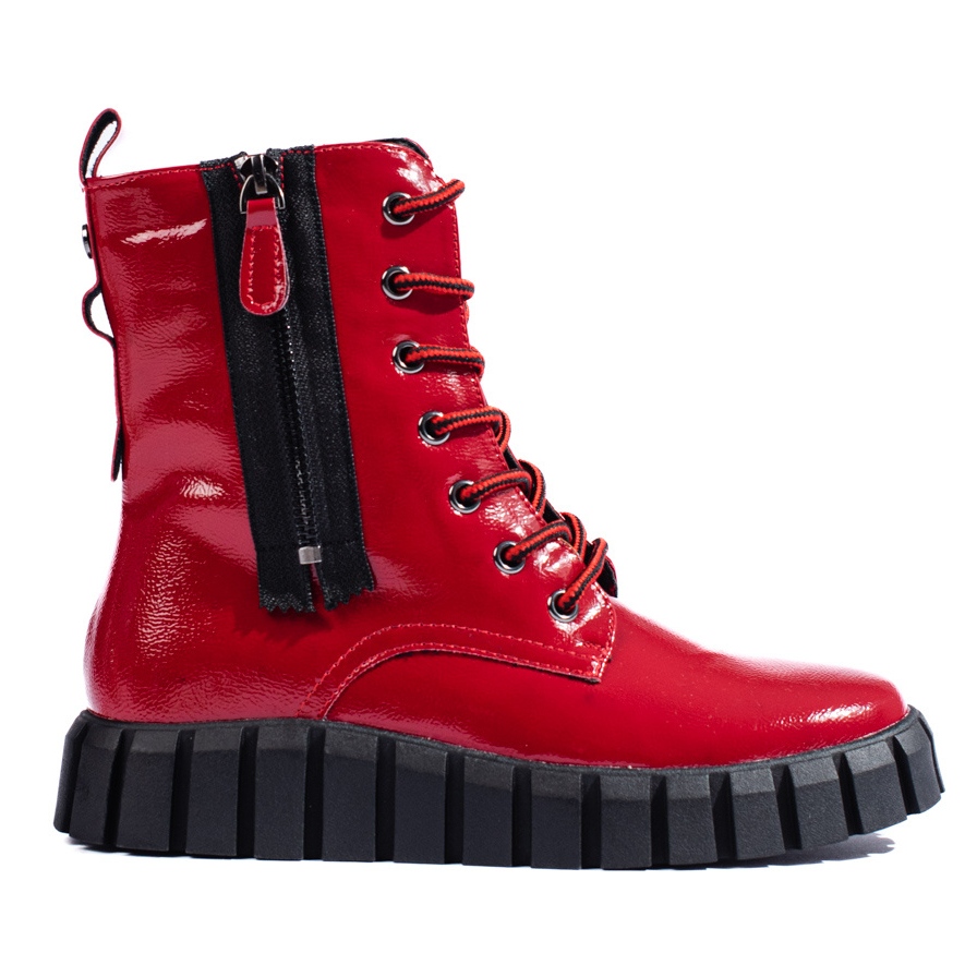 Upptäck unika röda plattformsarbetare från tillverkaren W. Potocki, som perfekt matchar aktuella trender. Dessa ankelboots för kvinnor kombinerar avslappnad och rockig stil, perfekt för höst/vintersäsongen. De är gjorda av ekologiskt patentläder av hög kvalitet och erbjuder inte bara ett attraktivt utseende, utan också komfort att bära.
