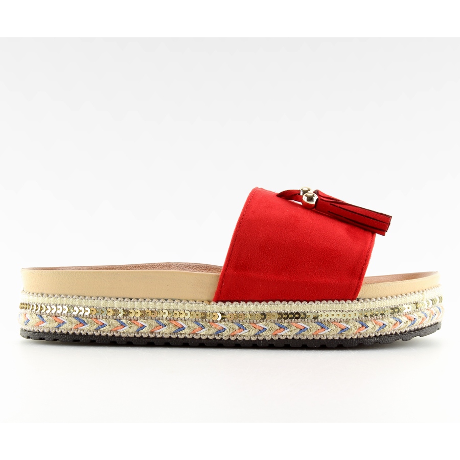 Gör dig redo för sommaren med röda LS-93 röda flipflops för kvinnor! Dessa fashionabla flip-flops kännetecknas av en hög, profilerad sula, som inte bara ger stil, utan också säkerställer komfort när de bärs. En look räcker för att bli kär i sin charm - originaldekorationer på sulan och charmiga tofsar drar till sig uppmärksamhet och ger skorna en unik karaktär.