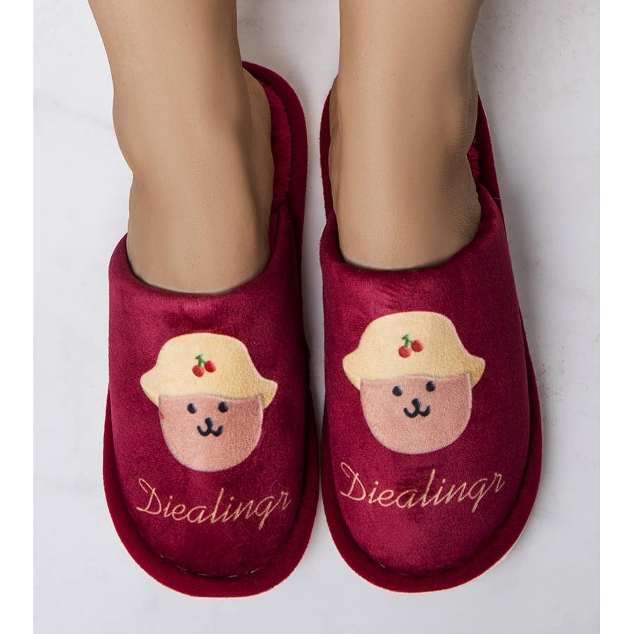 Mjuka, slip -in dialings tofflor i en elegant nyans av vinrött är ett bra val för svalare dagar. En inbyggd, rund tå med en charmig applikation med ett djurmotiv och en isolerad insats säkerställer värme och komfort hemma. En platt vit gummisula garanterar stabilitet, och tygets övre och insats ger mjukhet.