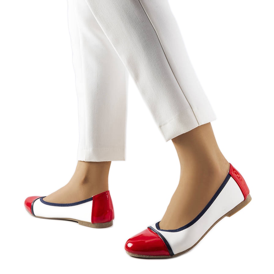 Klassiska, eleganta salmons ballerinas i vitt (tillverkarens färg: vit/marinblå). Målad, ekologisk hud ger dem en subtil glans och elegant karaktär, och beige, gummisula ger dragkraft och komfort under vardagsbruk.