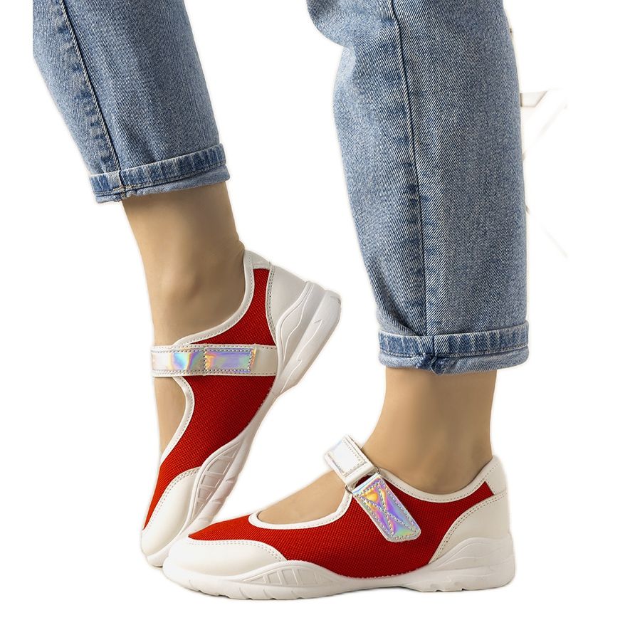 Upptäck unik stil och komfort med röda och vita Melania sportskor! Denna lätta modell är perfekt för vardagsaktiviteter, och de holografiska inläggen ger den en unik karaktär. Fäst med kardborre ger de komfort och enkel köp, vilket gör dem till ett utmärkt val för aktiva kvinnor.