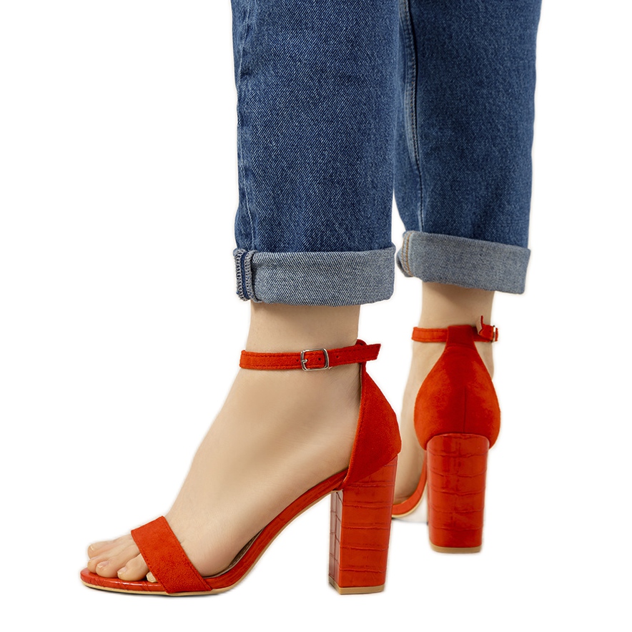 Detaljer: BM Röda pumps på en stolpe med Dolores ormmönster