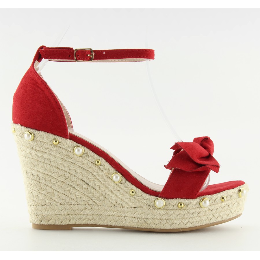 Upptäck magin med sommarstyling med extraordinära espadrillesandaler i en intensiv röd färg. Dessa damskor är det perfekta valet för kvinnor som vill sticka ut från mängden och njuta av komforten att bära. Utrustade med extremt höga 11 cm kilar och en 3 cm plattform, förlänger de optiskt benen, vilket ger sensualitet och elegans till siluetten.