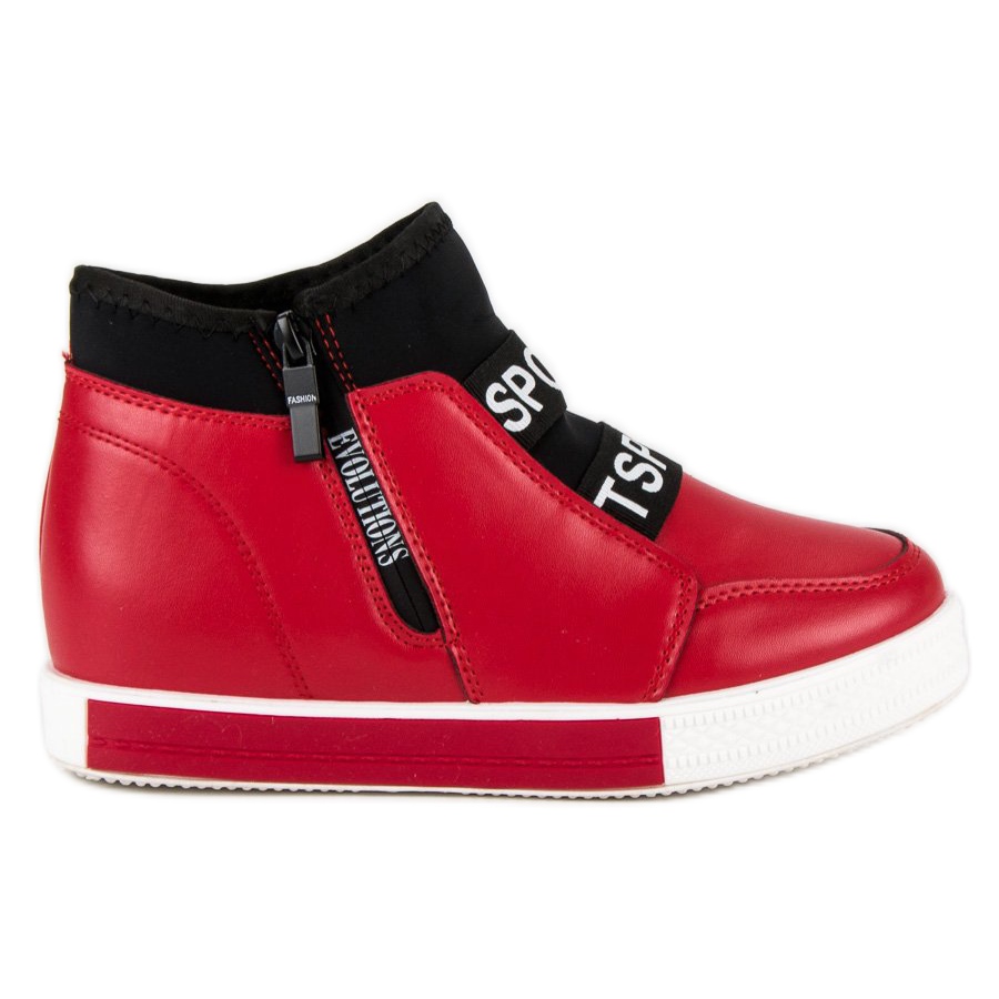 De röda och svarta sneakers har en optimal plattformshöjd på 2 cm, vilket gör dem inte bara snygga, utan också funktionella, vilket säkerställer komfort under vardagliga aktiviteter. Textilinlägget och den mjuka hälräknaren ökar dessutom bärkomforten. Skor som når över vristen stabiliserar foten perfekt, vilket är viktigt vid rörelse.