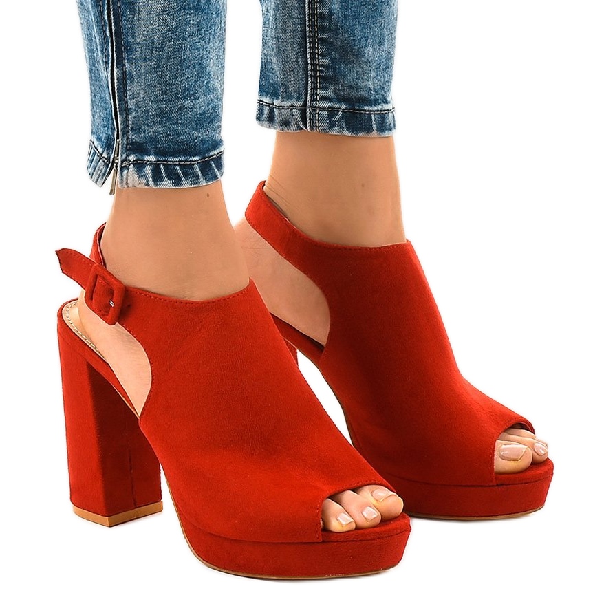 Inna marka Röda stövletter i mocka på stolpen 77-103