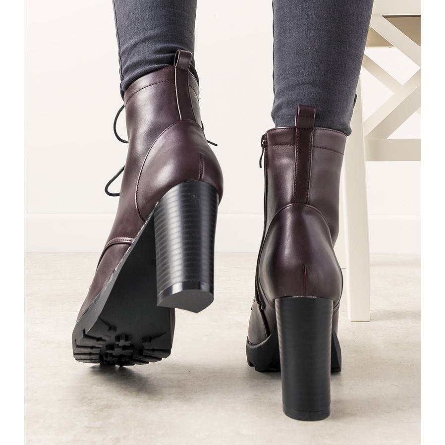 Detaljer: Rödbruna damstövlar med bindning på Najera -stolpen