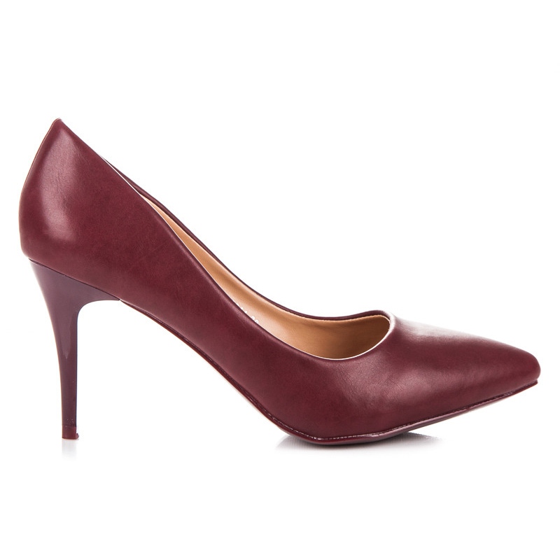Ideal Shoes Burgundy Red High Heels är en unik modell som säkerligen kommer att locka uppmärksamheten från varje kvinna som värdesätter elegans och stil. Dessa skor är gjorda av ekologiskt läder av hög kvalitet och ser extremt imponerande ut. Den klassiska designen med spetsig tå och en inbyggd, förstyvad häl gör dem perfekta för olika tillfällen – från fester till kvällsfester.