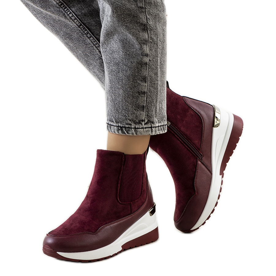 Upptäck extraordinär elegans och komfort i vinröda Arkala wedge ankelboots. Dessa unika skor passar inte bara perfekt in i nuvarande trender, utan säkerställer också komforten att bära tack vare lätt isolering på insidan. De är gjorda av ekologisk mocka och ser extremt snygga ut, och deras runda tå ger subtil charm.