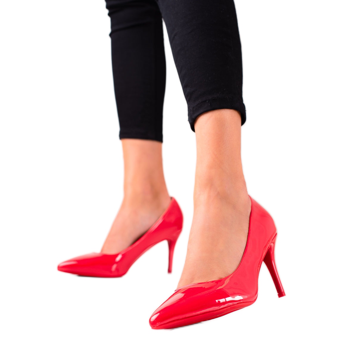 Tack vare den höga hälen på 8,5 cm kan varje kvinna känna sig självsäker och attraktiv. En bekväm slip-on stängning gör det enkelt att ta på och ta av sig skorna. Den röda färgen och den lackade finishen drar till sig uppmärksamhet och ger karaktär till varje styling.