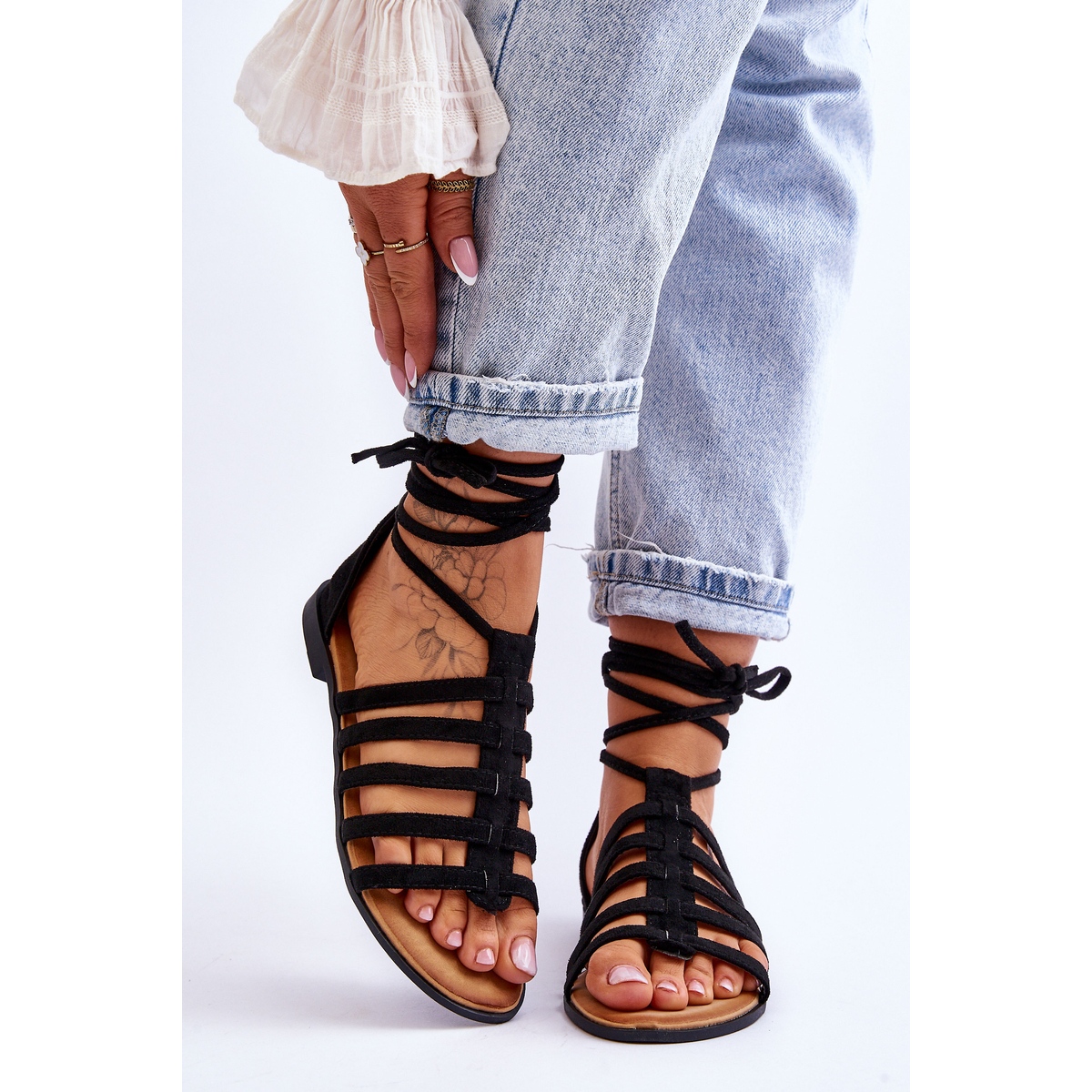 FC3 romerska mockasandaler för kvinnor Black Semper är ett idealiskt erbjudande för kvinnor som värdesätter stil och komfort under sommardagar. Klassiskt, tidlöst svart i kombination med det fashionabla snittet av romerska skor kommer att skapa ett oersättligt inslag i din sommargarderob.
