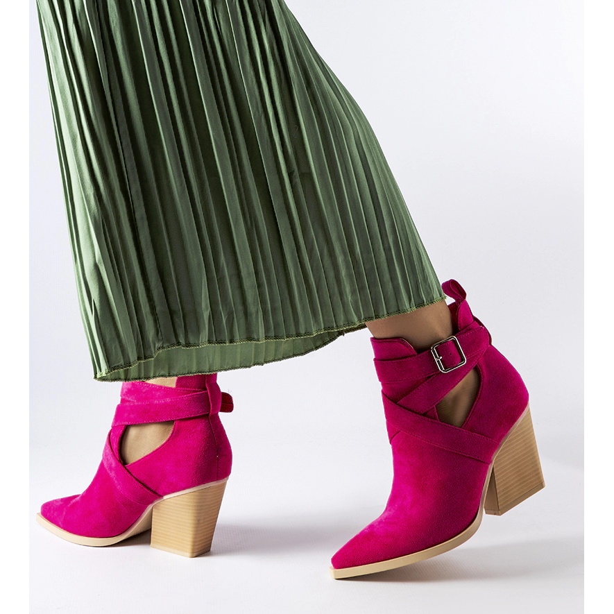 Deras innovativa design, monterad på en solid stolpe, säkerställer inte bara komforten att bära, utan ger också karaktär till varje styling. En hög klack på 8 cm får varje kvinna att känna sig elegant och självsäker vid alla tillfällen. Den fuxiarosa färgen är iögonfallande och gör att stövlarna passar perfekt till både avslappnade och mer formella outfits.