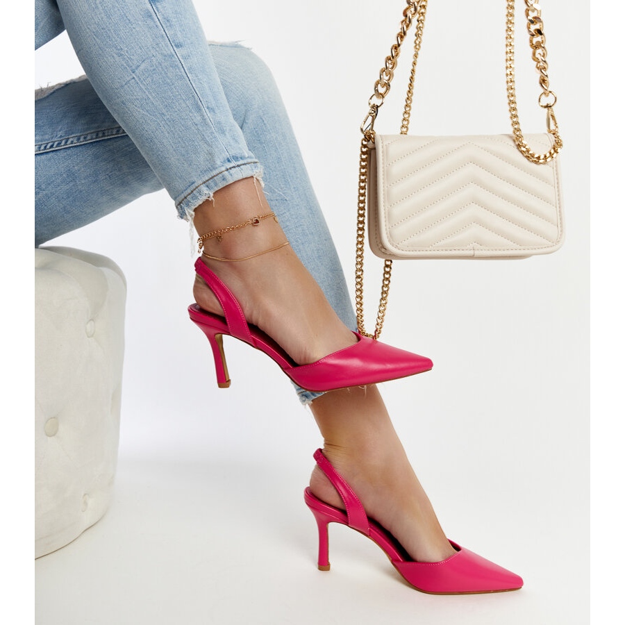 Upptäck elegans och stil med rosa Fontanile högklackat med öppen tå! Dessa unika skor, designade för moderna kvinnor, kombinerar subtiliteten i rosa färg med en klassisk, spetsig tå. Tack vare slip-on-designen är de inte bara bekväma, utan också extremt praktiska – de är lätta att ta på och av, vilket gör dem till det perfekta valet för alla tillfällen.