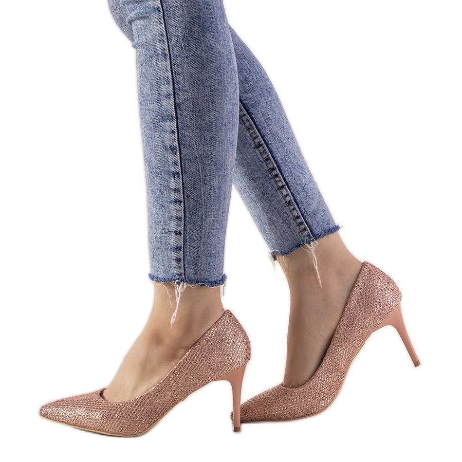 Rosa glänsande Dolche-pumpar är det perfekta valet för varje kvinna som vill lägga till lite glans och unikhet till sin styling. Dessa eleganta skor, gjorda av ekologiskt läder av hög kvalitet, utmärks av en fantastisk glittertäckt finish som fångar ögat och utstrålar stilfull charm.