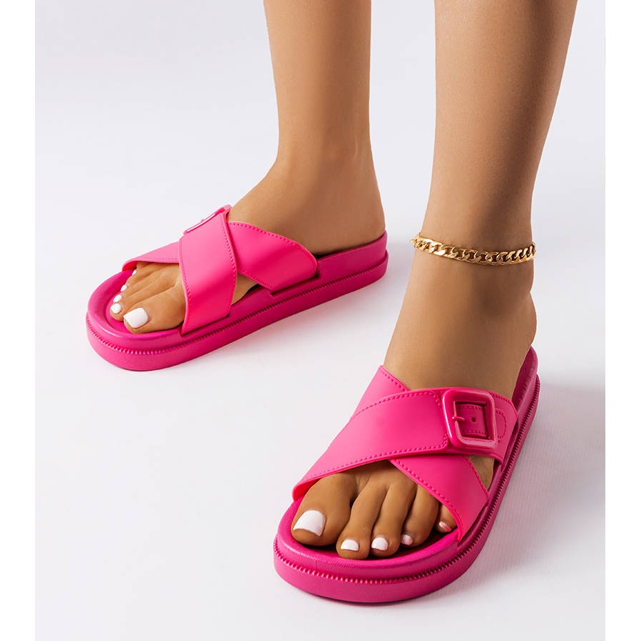 Pauline-modellen är utrustad med ett attraktivt spänne, som inte bara är ett praktiskt element, utan också en estetisk accent. I en nyans av fuchsia är dessa flipflops iögonfallande och universella nog att matcha ett brett utbud av sommarstilar, från strandklänningar till cityshorts.