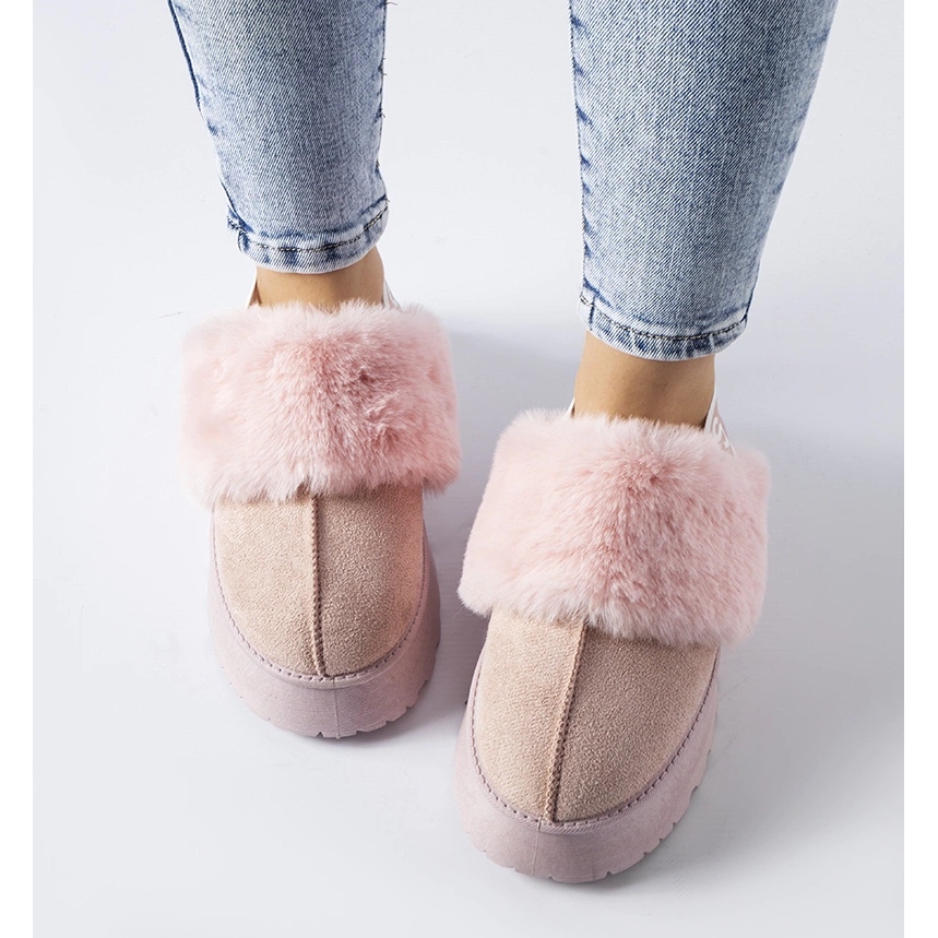 Rosa isolerade tofflor med ett elastiskt band och Sangro Fur (Model QZ23312) - En kombination av komfort och kvinnlig stil perfekt för höstens säsong.