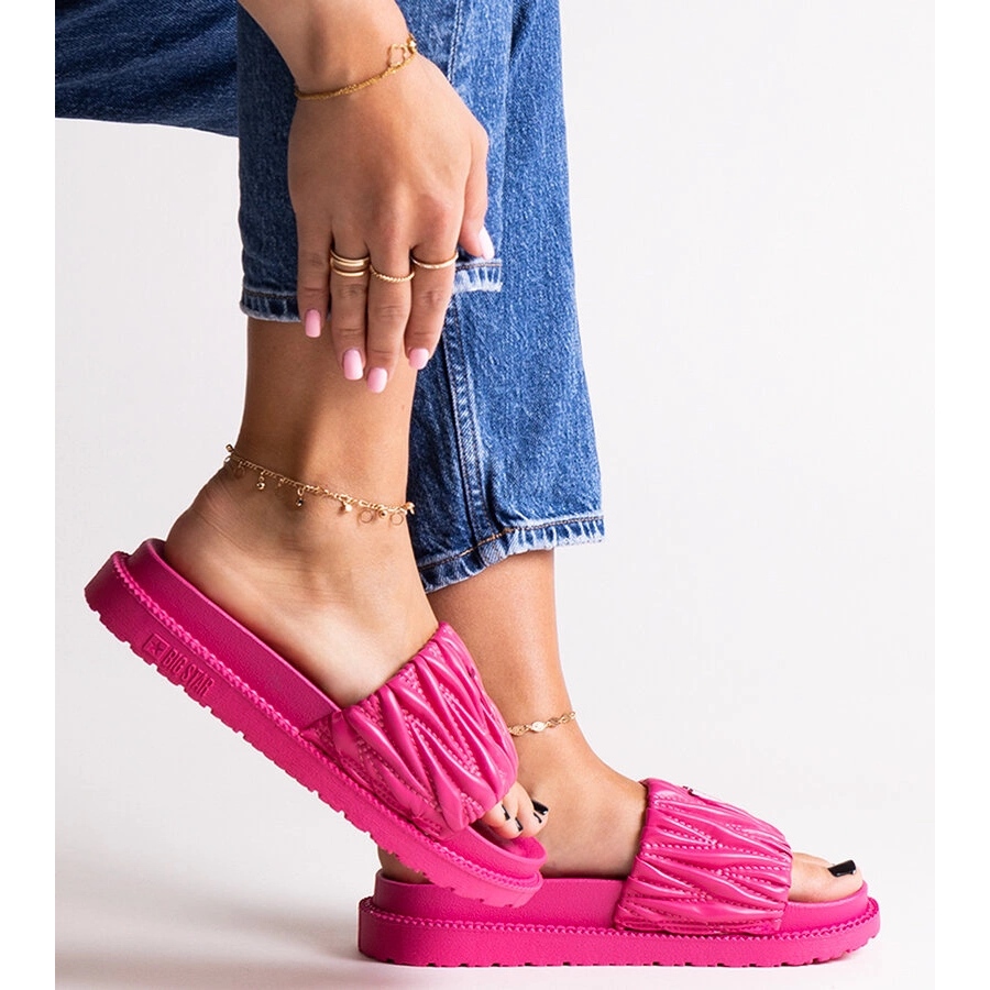 Pink Flip Flops med en Barrying Big Star NN274A749 är det perfekta valet för sommardagar när komfort träffar en fashionabel design. Tillverkade av flexibelt gummi garanterar dessa flip flops en perfekt passform och komfort att bära, vilket gör dem måste-ha i varje sommargarderob. Deras intensiva nyans av fuchsia fångar ögat och ger lätthet till alla stiliseringar.