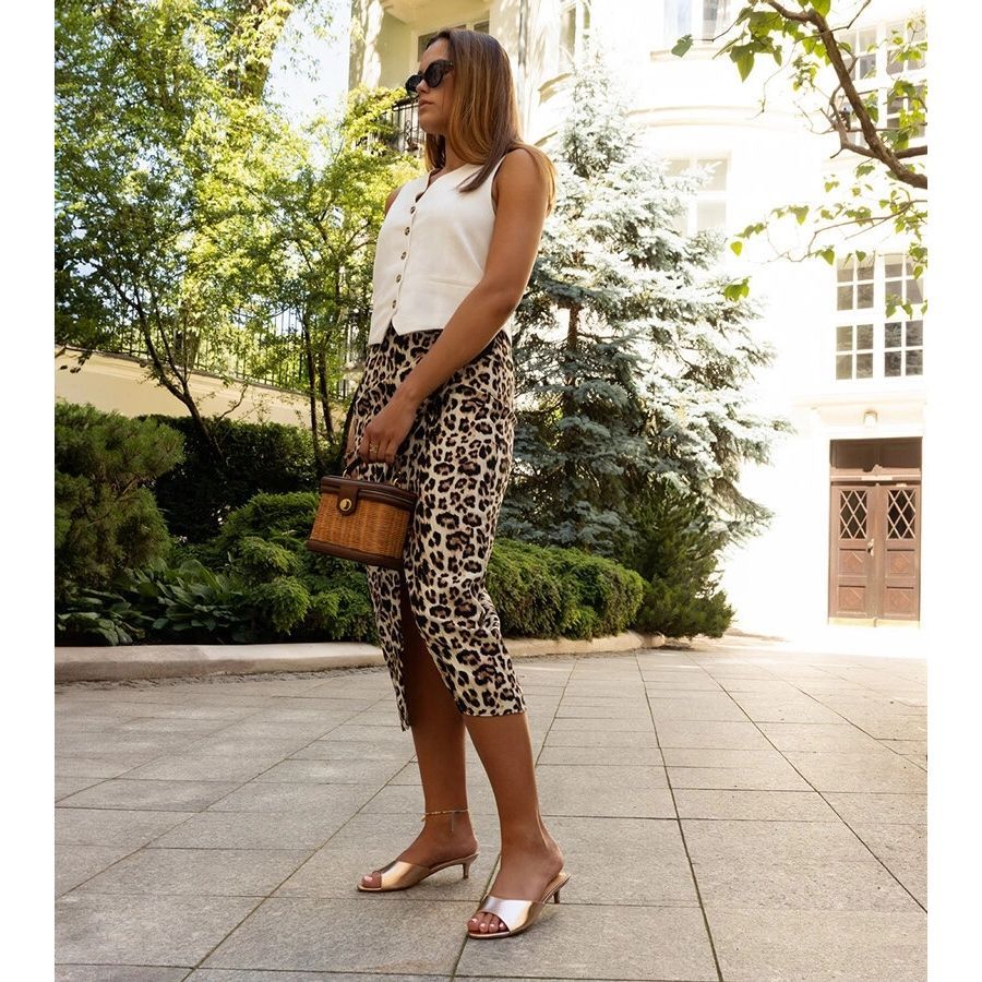 Flip flops har utformats för komfort och elegans. En låg häl med en höjd av 5,5 cm ger dem en subtil stil, och den insatta låset gör det lättare att ta på sig och ladda ner. Gruppen av högkvalitativt ekologiskt läder är flip flops inte bara fashionabla utan också miljövänliga. En ytterligare fördel är den metalliska accenten, som perfekt passar in i de senaste trenderna.