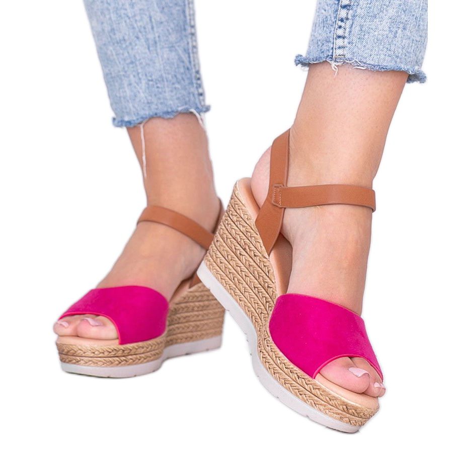 Upptäck en unik modell av kilsandaler - Roki, som kommer att bli ett oersättligt inslag i varje sommarstyling. Dessa vackra fuchsia-rosa skor, gjorda av ekologiskt mockaläder, njuter inte bara av sin estetik, utan också med sin komfort att bära. Den lätta konstruktionen och den mjuka, välformade innersulan gör att bära dessa sandaler i flera timmar till ett rent nöje.