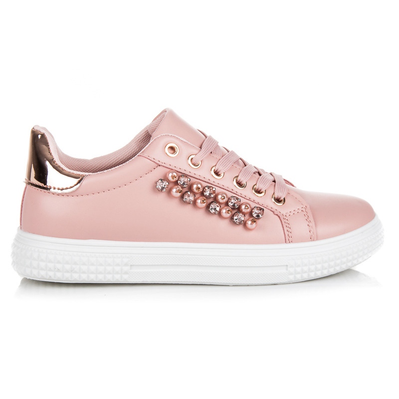 Den rosa färgen gör att sneakersna passar bra med olika stilar och tillför lite fräschör och flickaktig charm. Utan ett mönster kommer de att vara en idealisk bas för att skapa unika outfits. Om du letar efter bekväma och moderiktiga sneakers kan du inte ignorera denna modell! Välj rosa sneakers med pärlor och njut av stil och komfort varje dag!