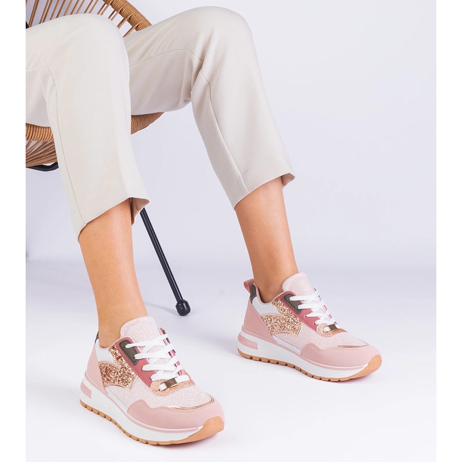 Detaljer: Rosa sneakers på plattformen dekorerad med glitter