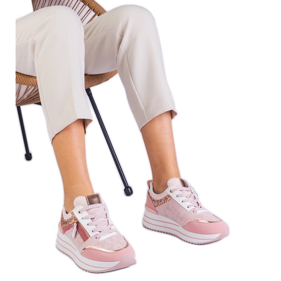 Detaljer: Rosa sportsneakers på plattformen dekorerad med glitter