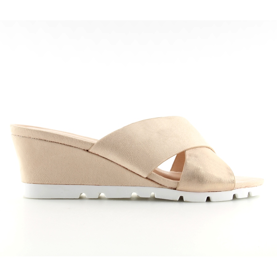 Information: Rosa tofflor på en låg kil rosa Y-8219 Rosa
