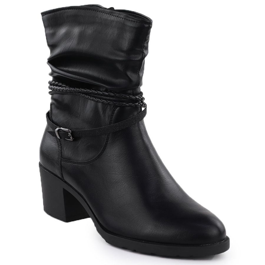 Eleganta och bekväma, skrynkliga stövlar på blocket Women's Black Jezzi ASA128-63 är det perfekta valet för varje kvinna som värderar ett modernt utseende och komfort. Tillverkade av ekologiskt läder med hög kvalitet, dessa stövlar kombinerar stil med praktiska, och deras övre når en höjd av cirka 17 cm perfekt lindar kuben och lägger till elegans till all stilisering.