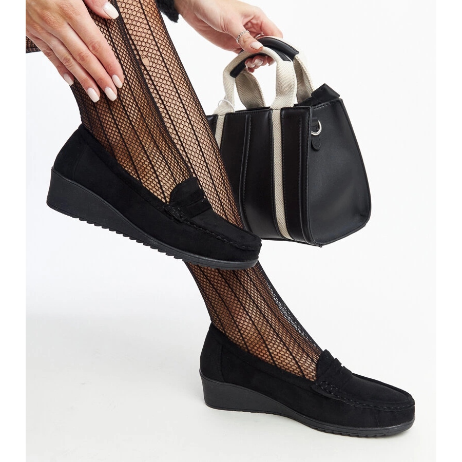 Information: Sakena wedge loafers i svart mocka
