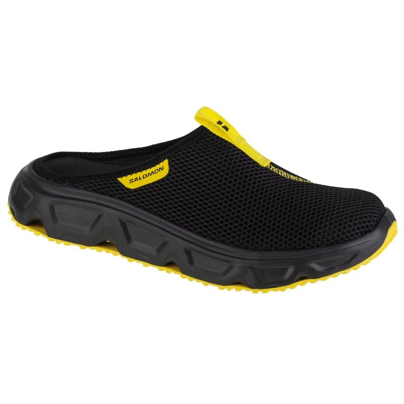 Salomon Reelax Slide 6.0 flip-flops finns i elegant svart med gula accenter, vilket ytterligare understryker deras moderna design. Utan framgång kan de bli en oskiljaktig del av vilken sommarstyling eller vardagsgarderob som helst.