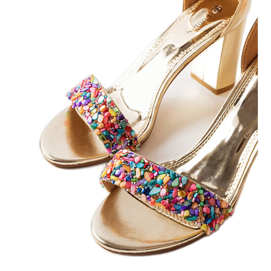 - Modell: Sandaler i guld dekorerade med småsten