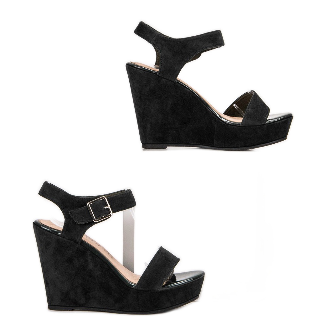 Upptäck unik stil och komfort med svarta ekologiska mockasandaler från Vinceza. Dessa eleganta skor är det perfekta valet för självsäkra kvinnor som vill betona sin individualitet. Sandalerna kännetecknas av en hög kil på 11,5 cm, som förlänger och exponerar benen, vilket ger chic och elegans till varje styling.