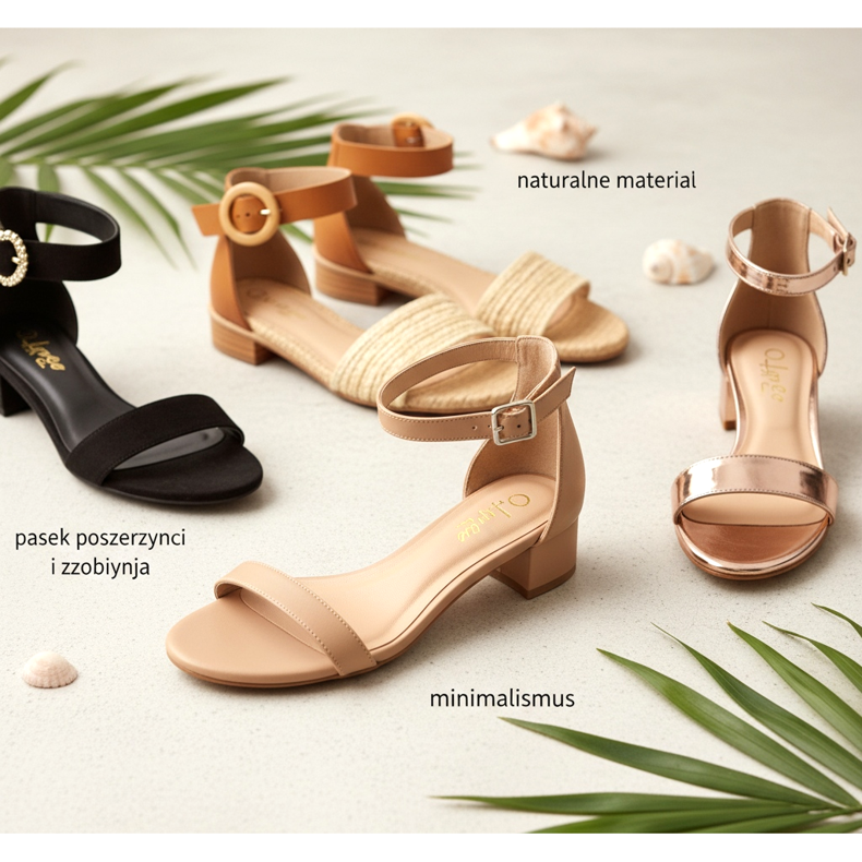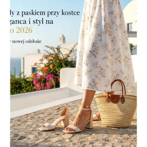 Sommarsäsongen 2026 finns sandaler med ankelband i dussintals versioner: högklackat, högklackat, kil och platt sula. Versioner med en enda rem och versioner med flera tvärgående remmar (gladiatorstil) är på modet. De dominerande materialen är naturligt läder, mocka och ekologiska substitut samt raffiasömmar och jute, i linje med trenden för en naturlig sommarlook.