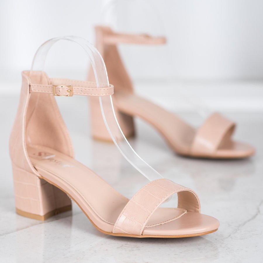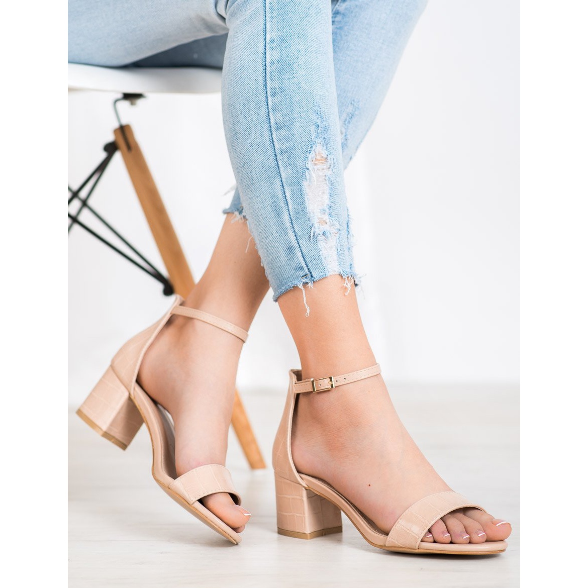Seastar-sandaler kännetecknas av öppna tår och en inbyggd häl, vilket säkerställer inte bara ett elegant utseende, utan också komfort att bära. Toppremmen är gjord av högkvalitativt material och avslutas med ett guldspänne, vilket framhäver deras klassiska design. Den 6 cm höga klacken i form av ett block garanterar stabilitet och komfort, perfekt för både kvällsutflykter och fester.