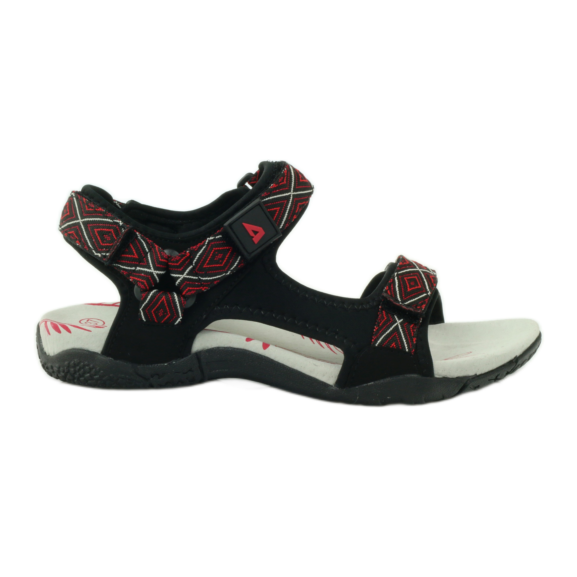 Upptäck komfort och stil med American Club-sportsandaler i svart och rött, aztekiskt mönster (modell 6102). Dessa unika sandaler designades för aktiva kvinnor som värdesätter inte bara komfort utan också ett moderiktigt utseende.