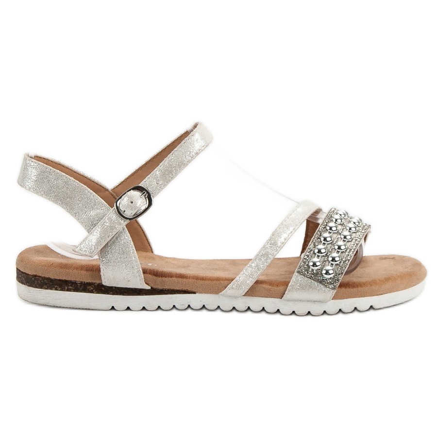 Upptäck charmen med grå Groto Gogo-sandaler med glitter - det perfekta valet för vår- och sommardagar! Dessa unika damsandaler njuter av sin eleganta design, dekorerade med strass på remmen som stöder foten, vilket gör dem till en stilfull accent till varje vardagsstyling.