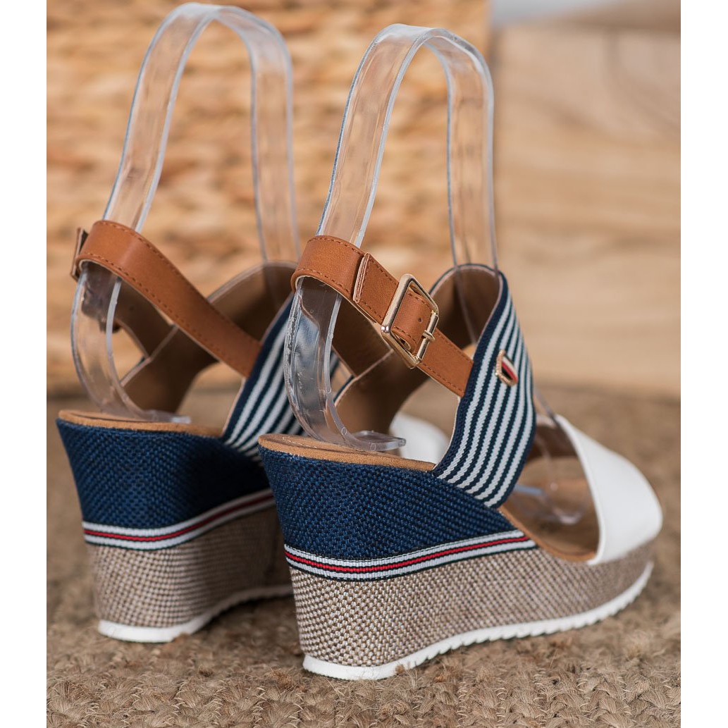 Lägg till en touch av elegans och stil till din sommargarderob med kilasandaler från Goodin. Dessa unika skor, i vitt och blått, kombinerar komfort och ett moderiktigt utseende, vilket gör dem till ett idealiskt val för många tillfällen.